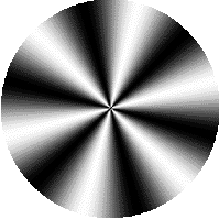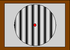 Variety of motion stimuli:In visual motion stimuli the fixation of the eyes is a very critical point. With moving sine wave gratings there is a considerable tendency to move the eyes with the pattern, which in turn will nearly abolish the motion of the retinal image. In the rotating windmill pattern, the eyes can rest comfortably and securely in the centre of the windmill. This kind of stimulus was hence preferred in my own experiments, although before then it was a more unusual stimulus. The start and stop of the rotation are the actual stimuli, of which the retinal or cortical responses are sought for. Among the parameters, which can easily be varied, are pattern contrast, rotation speed (angular velocity), and duration of rotation, or depending vice versa angle of rotation (for example defined as a multiple of the extent of one vane). Please also note the motion aftereffect, a short impression of counterwise rotation following the sudden stop of the windmill, which is best perceived, when the centre has been fixated correctly (click with mouse button to halt). The displayed sample stimulus is of course moving much more stepwise than the real stimulus in my laboratory, due to restrictions of the used JAVA application and the speed of your computer.